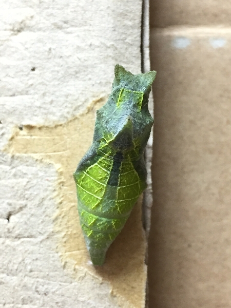 蛹が傾いていたから、上を向くように板の角度を変えたせいかなぁ。