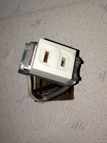 コンセントと言えば、古い洗面台を外したら現れたこの中途半端なコンセント。