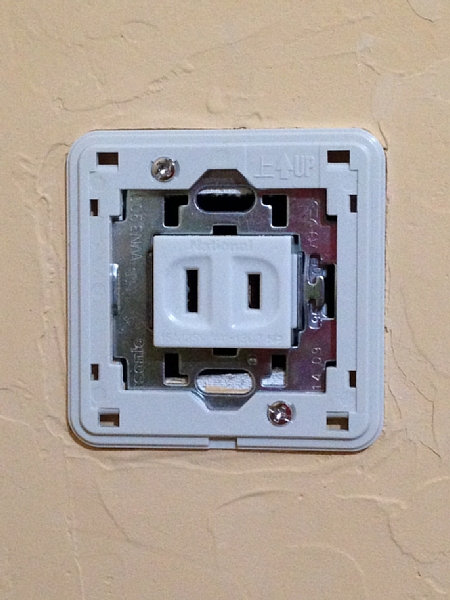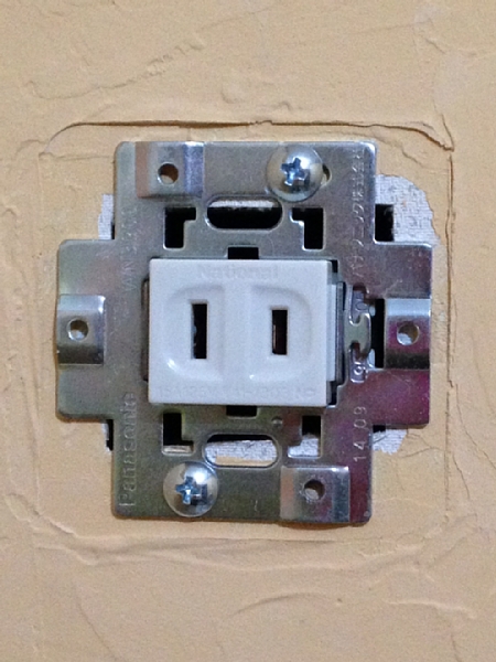 埋込取付枠とコンセントプレートで真っ当な形に仕上げました。