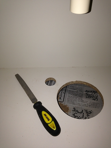 ホールソーなら中心が決められる分もう少し簡単でしょうが、これだけのために買うのも何だかなぁ。