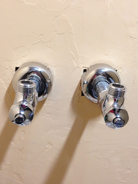 早速給水管を付けようとすると、どうも止水栓の角度がまずい。