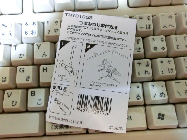 ボールタップ用バルブ、フロートバルブ、つまみねじです。