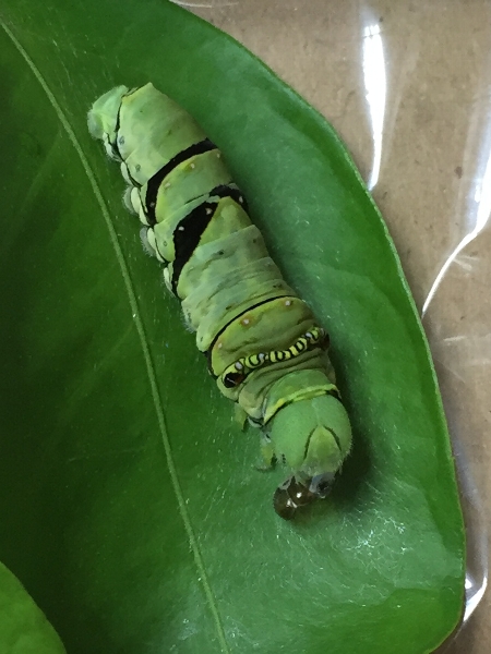 出た! じゃじゃーん!緑の5齢(終齢)イモムシ登場^^