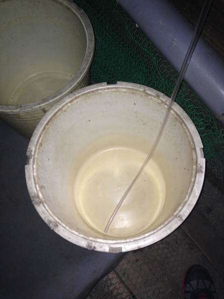 以前から大雨に備えて私の手の届く所で最も水源(?)に近いと思われる2階のベランダの壁に棚を作り壁に沿うよう細長いバケツを置いていたものの、ここ最近の雨はそのバケツを軽く超越する天の恵みであり、結果、1階店舗の花の上にまで降り注がんとするので、どうしたものかと思案していました。