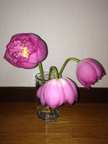 でも、切り花のハスとしてはとても珍しく綺麗に咲きました。