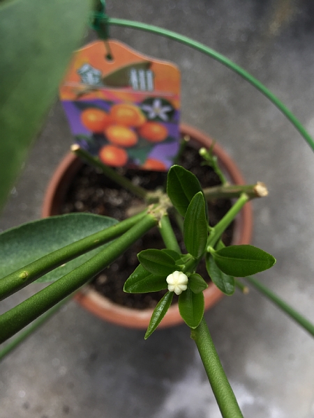 糧といえば、イモムシケムシたちにほとんど食べ尽くされたキンカンから、小さな新芽と白い蕾が出てきました。