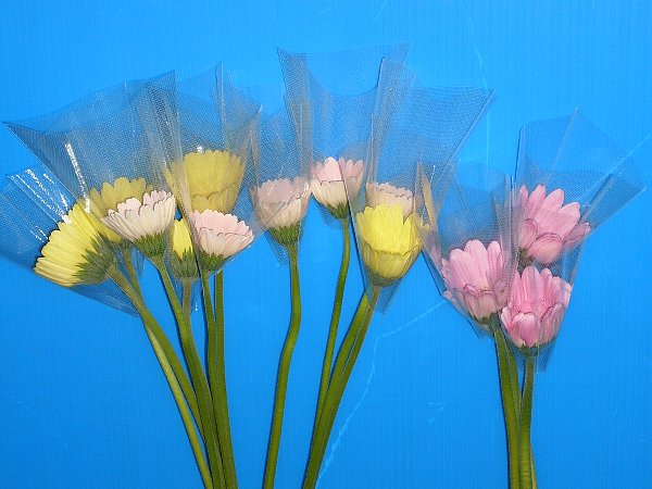 ひらひらした金魚の尾のような花弁が綺麗な花で人気があり、当店では只今黄色のSサイズが5本200円!