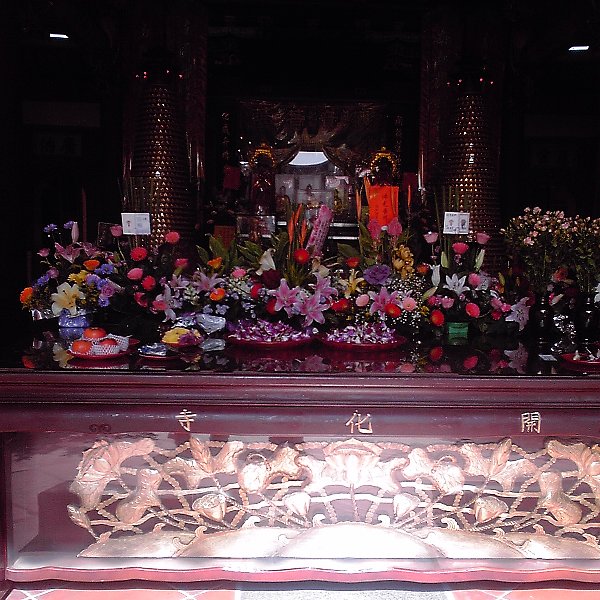 台湾には寺や廟がたくさんありますが、どこへ行っても花が生けてあり、そのどれもが造花ではなく生花です。