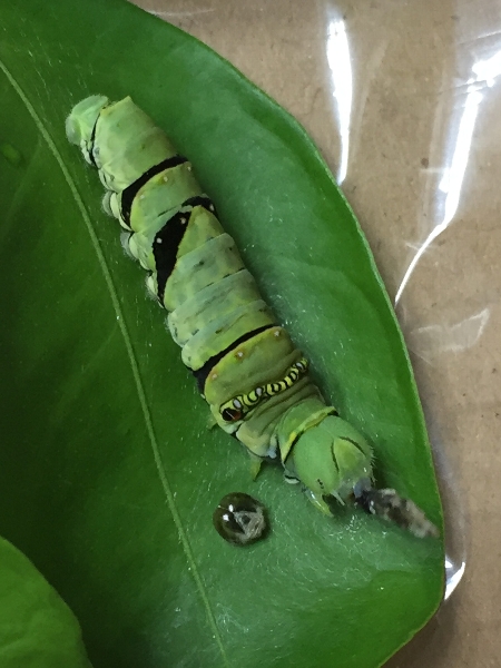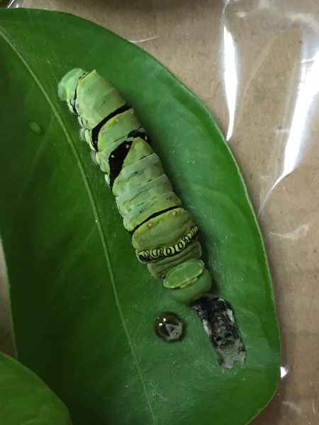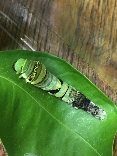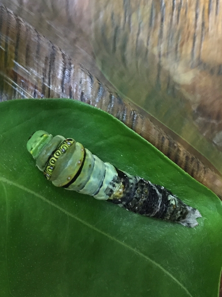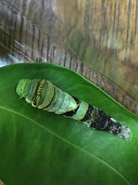 出た! じゃじゃーん!緑の5齢(終齢)イモムシ登場^^