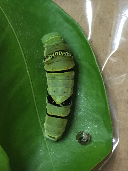 〔注〕ナミアゲハの幼虫はミカン、レモン、ハッサク、ユズ、キンカンなど柑橘類や同じくミカン科のサンショウの葉を食べます。