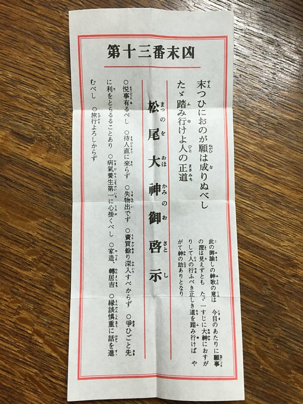 今後を占うものではなく、現在の注意点と考えればたとえ大凶でも恐るるに足らず。